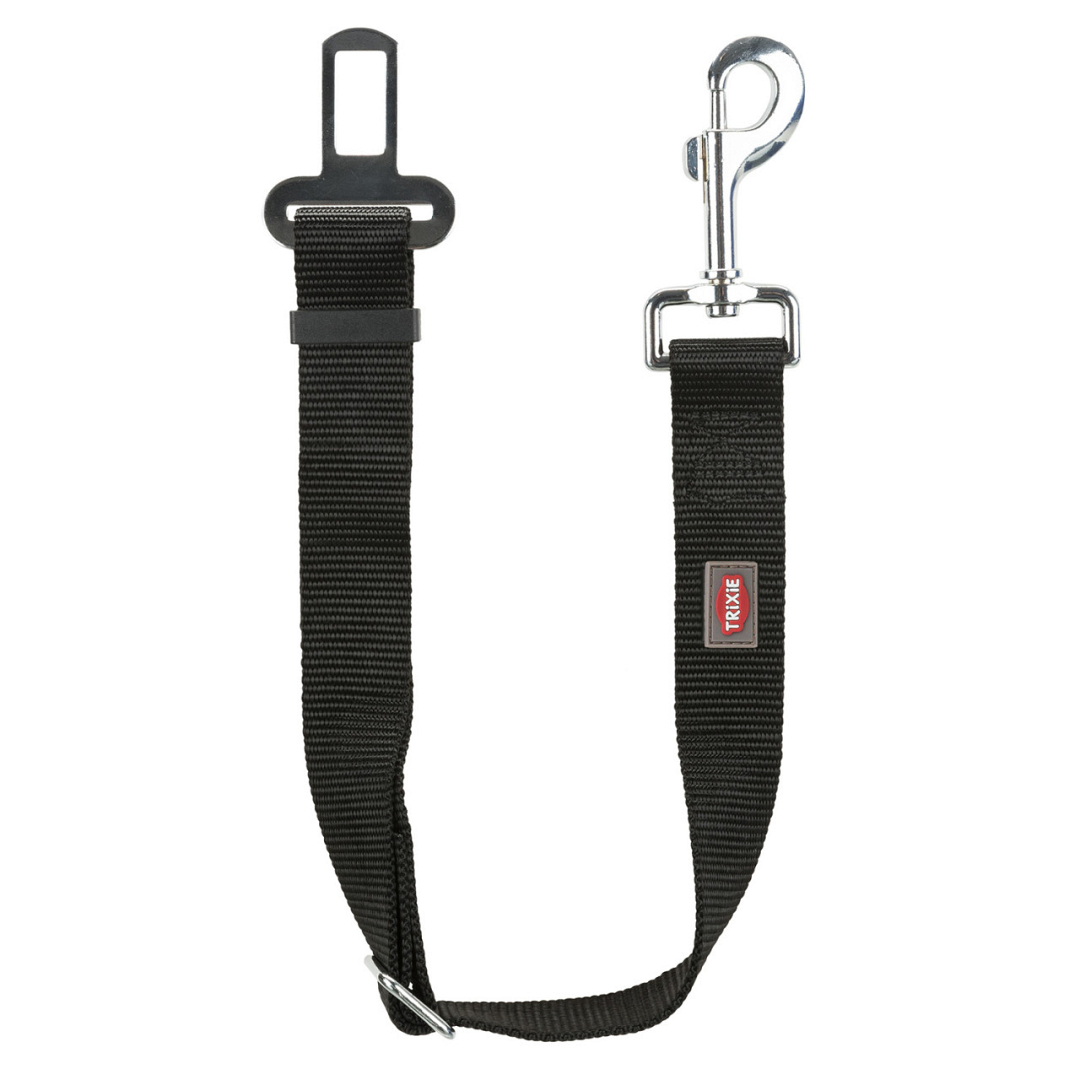 Met de Trixie veiligheidsgordel voorkom je dat jouw hond zich vrij door de auto kan bewegen. Met de musketonhaak maak je de gordel vast aan het autotuig van je hond, de andere kant steek je in de gordelhouder.
