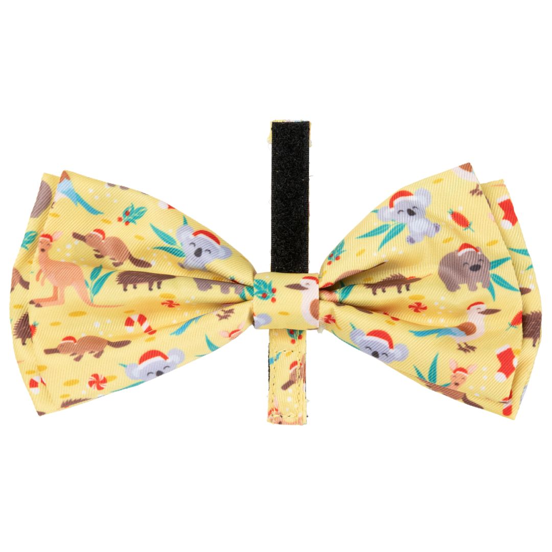 Kerstmis in de outback? Dat is pas een vibe! De Outback Wonderland Bowtie brengt feestelijke Australische charme in de kerstgarderobe van jouw viervoeter, met koala's, wombats en vogelbekdieren die in echte Down Under-stijl met kerstmutsen pronken. Perfect voor honden die van een kerst houden met een beetje zonneschijn en veel bravoure.
