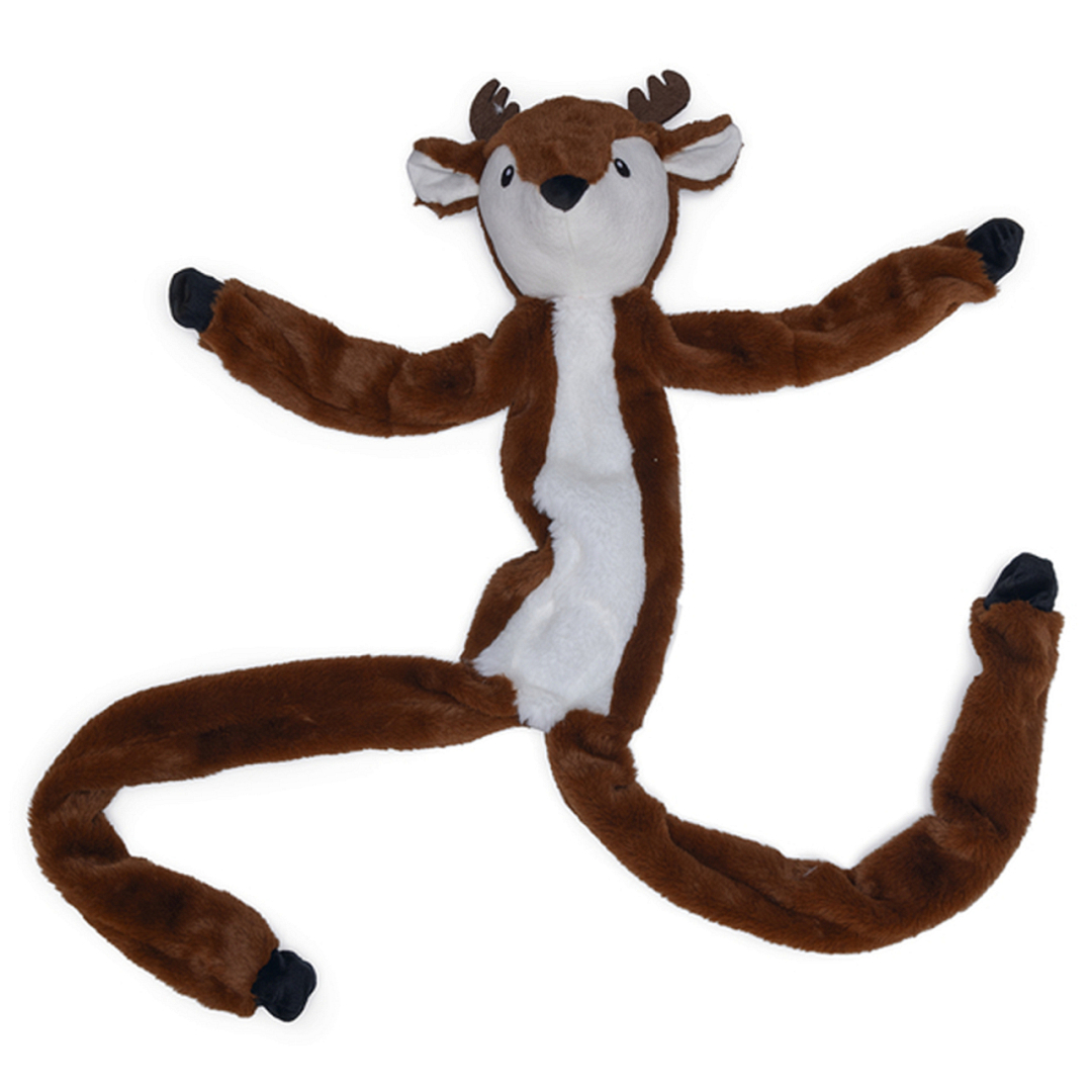 Beeztees Rendier met Touw is het perfecte hondenspeeltje voor jouw hond tijdens de gezellige herfst- en wintermaanden! Dit schattige rendier is gemaakt van zacht pluche en corduroy stof, waardoor het lekker comfortabel is om mee te knuffelen. In de armen, benen en buik van het rendier zijn speeltouwen verwerkt, waardoor het ideaal is voor trekspelletjes en interactief plezier. Door de lengte van maar liefst 1 meter biedt dit hondenspeelgoed volop ruimte voor je hond om zich helemaal uit te leven. Het speelgoed heeft geen pieper, wat zorgt voor rustig speelplezier. Of je hond nu houdt van trekken, spelen of lekker knuffelen, dit rendier is het ideale speelmaatje voor jouw hond!