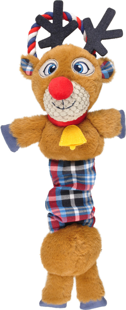 Dit rendier met bungee en touw is leuk kerstspeelgoed voor de hond. Geschikt voor trekspelletjes.