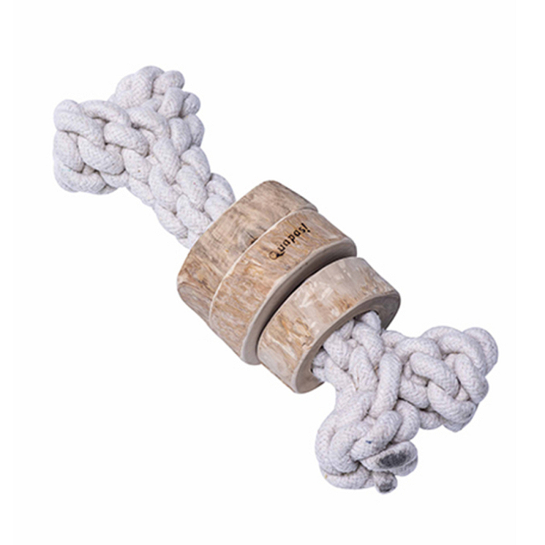 Quapas! Coffeewood Bone is een hondenspeeltje van koffiehout & touw.
