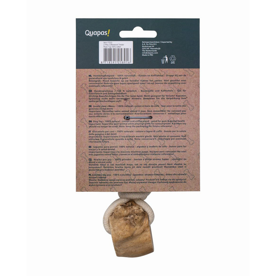 Quapas! Coffeewood Twist is een hondenspeeltje van koffiehout & touw.