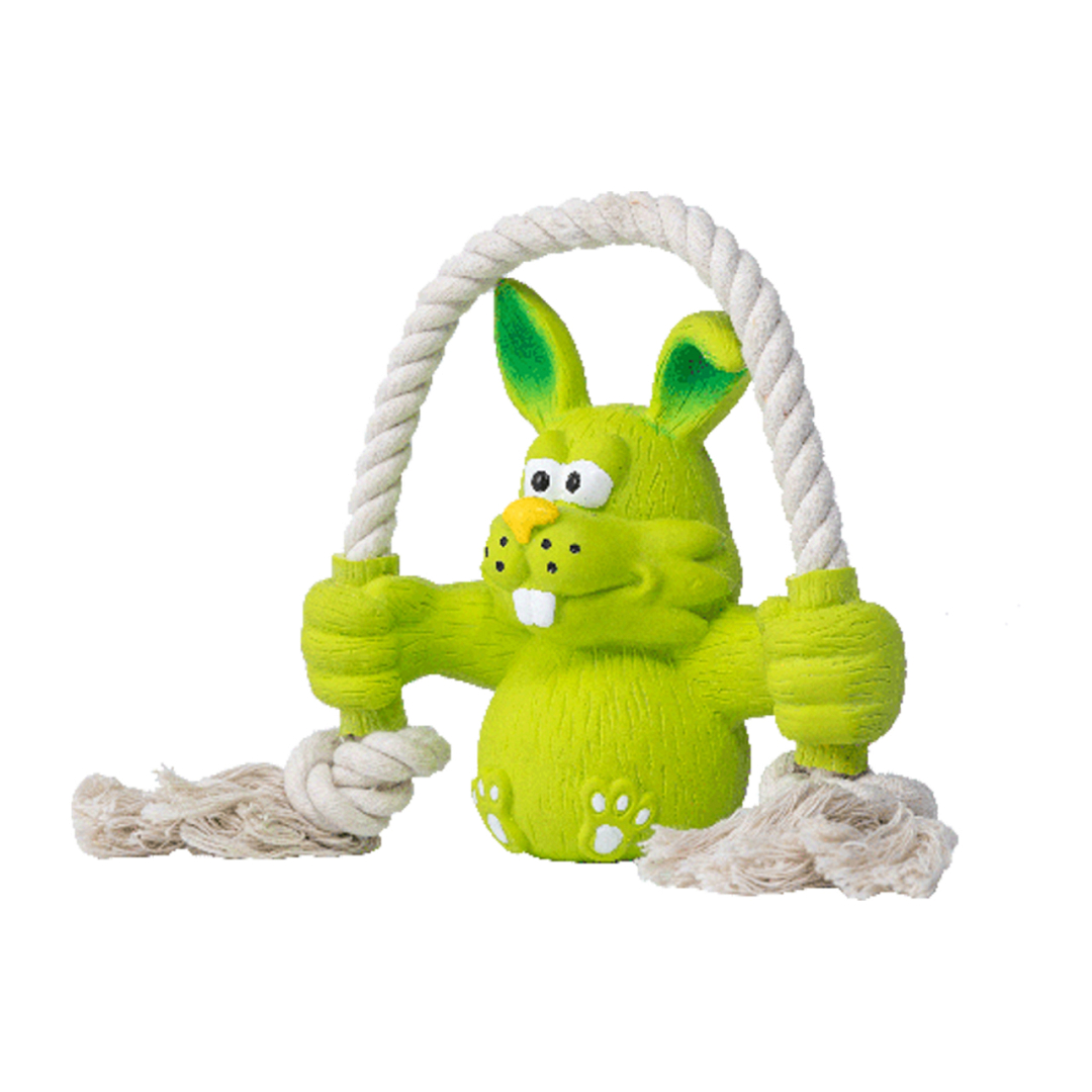 Quapas! Fun Rabbit with rope is een hondenspeeltje van latex, met piep.