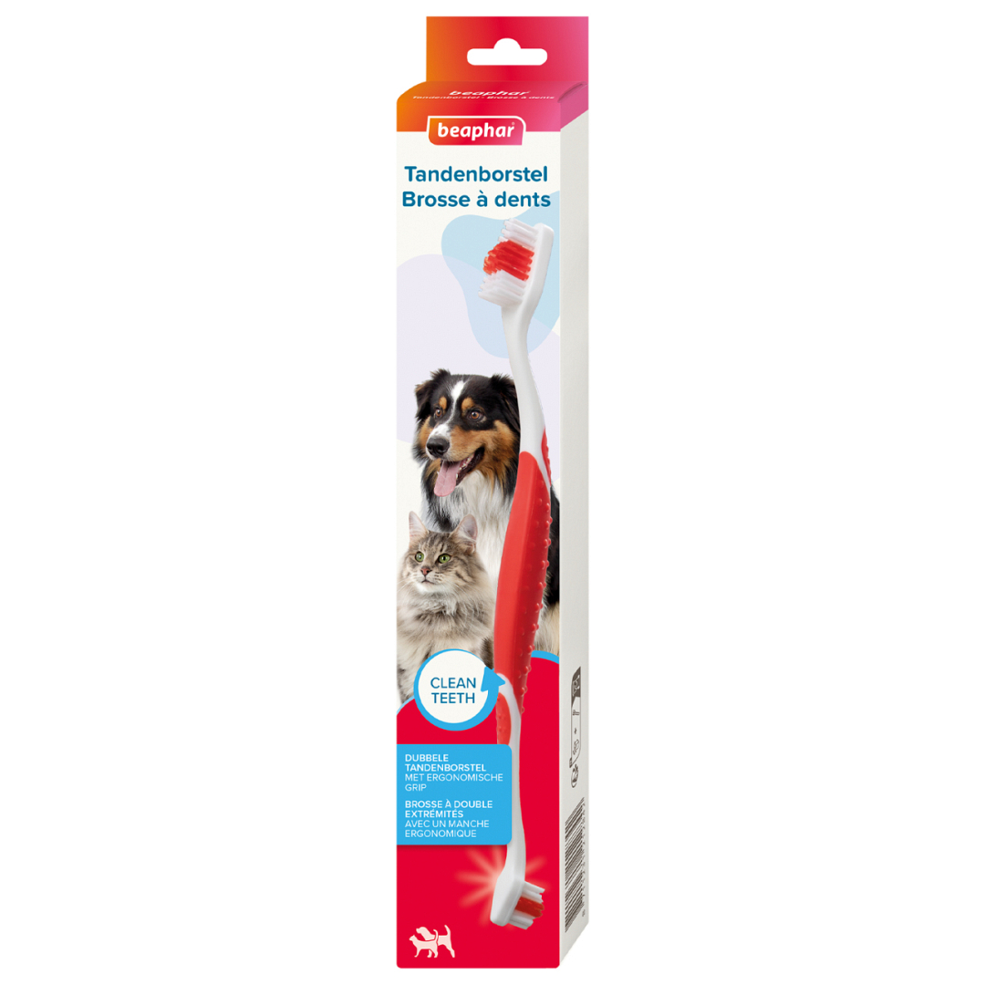 Dubbelzijdige tandenborstel afgestemd op de unieke vorm van de tanden van je hond of kat.