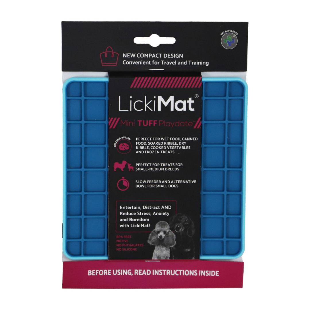 De Lickimat Tuff is ontworpen voor puppy's met een scherp melkgebit en speelse honden die op alles willen kauwen. De robuuste, plastic omranding zorgt ervoor dat het product beter bestand is tegen kauwen. De Tuff is gemaakt om allerlei soorten lekkernijen en voedsel, variërend van yoghurt, pindakaas en allerlei smeerbare lekkernijen tot rauw, nat, droog en vloeibaar voedsel, te kunnen voeren.