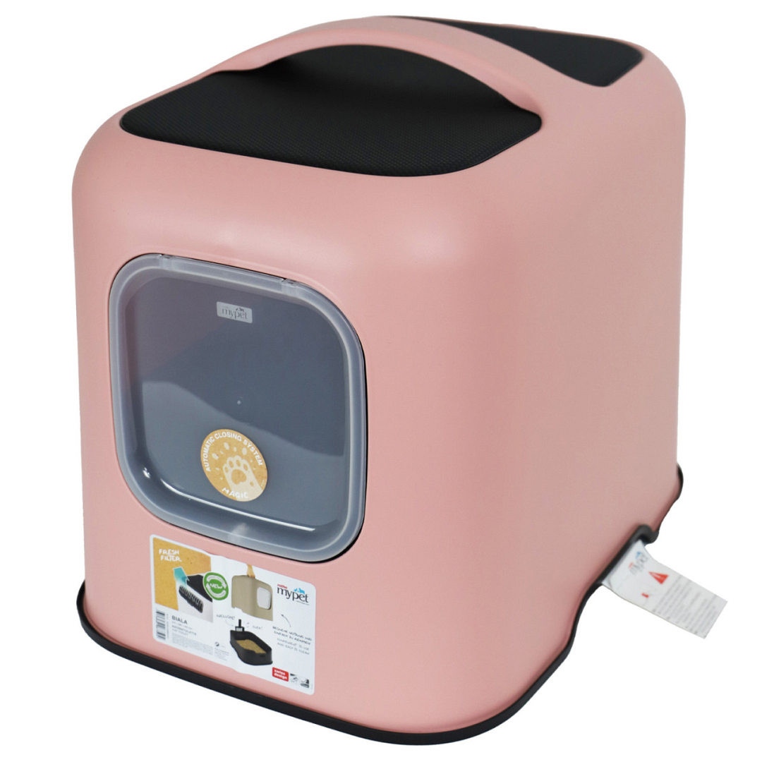 Kattentoilet Biala is een stijlvolle kattenbak. Door de eenvoudig afneembare bovenkap met handvat is het toilet ook zeer gemakkelijk te verschonen. De kap kan met een simpele handbeweging worden afgenomen en teruggeplaatst. Er hoeven geen klemmen te worden vast- of losgeklikt.