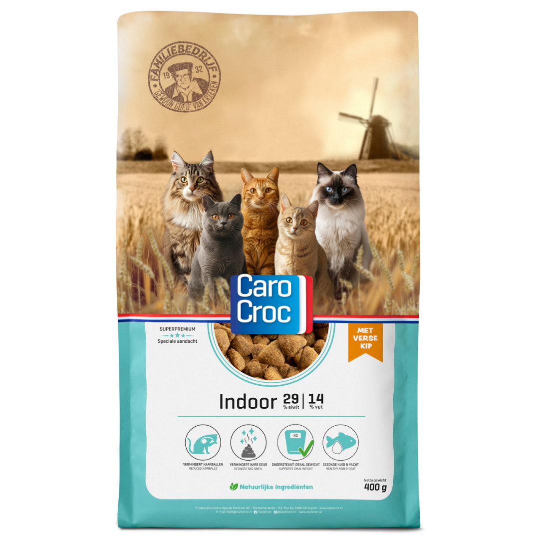 Volwassen katten die voornamelijk binnenshuis leven hebben specifieke behoeften en bewegen minder dan katten die ook buiten komen. Speciaal voor deze huiskatten is CaroCroc Indoor ontwikkeld.