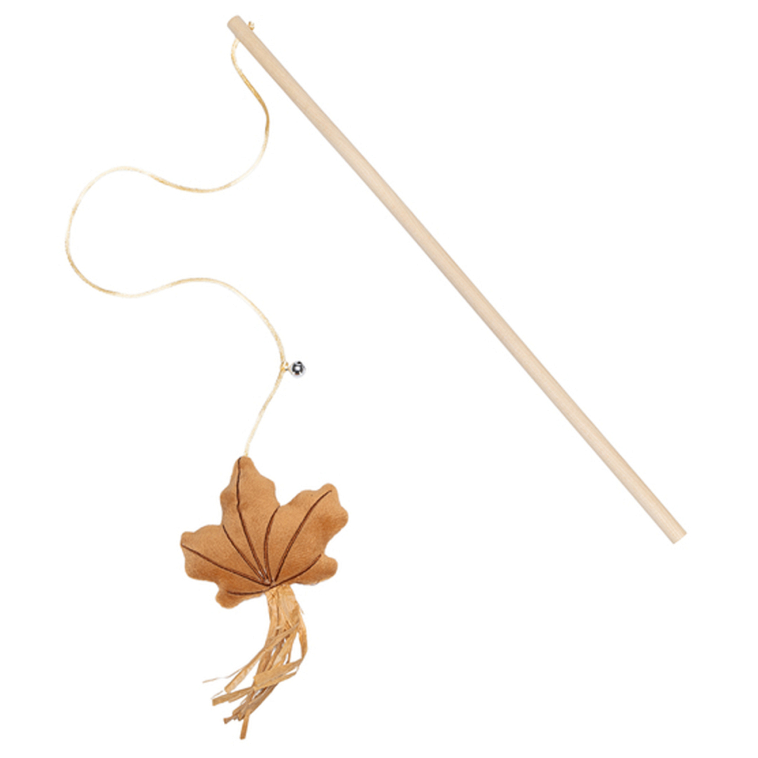 Leuke, uitdagende kattenhengel met zacht pluchen blad en belletje.