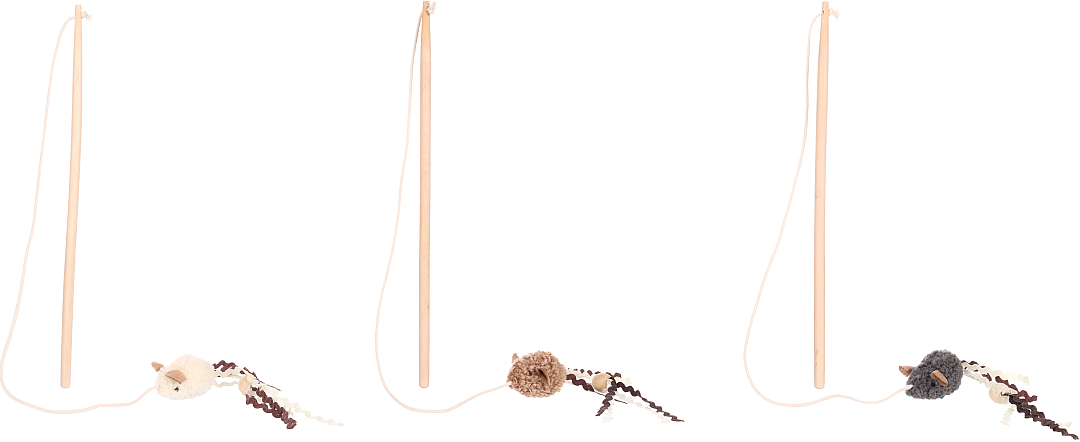 Leuke speelhengel met catnip gevulde muisjes. Kleur niet vrij te kiezen.