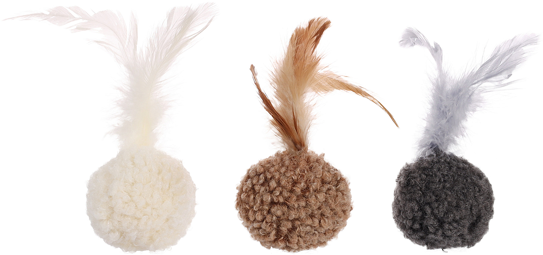 Speelgoedballetje met veertjes. Met catnip en knisperend geluid. Kleur niet vrij te kiezen.