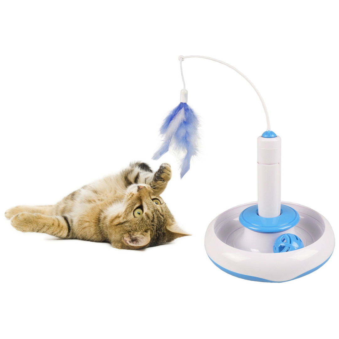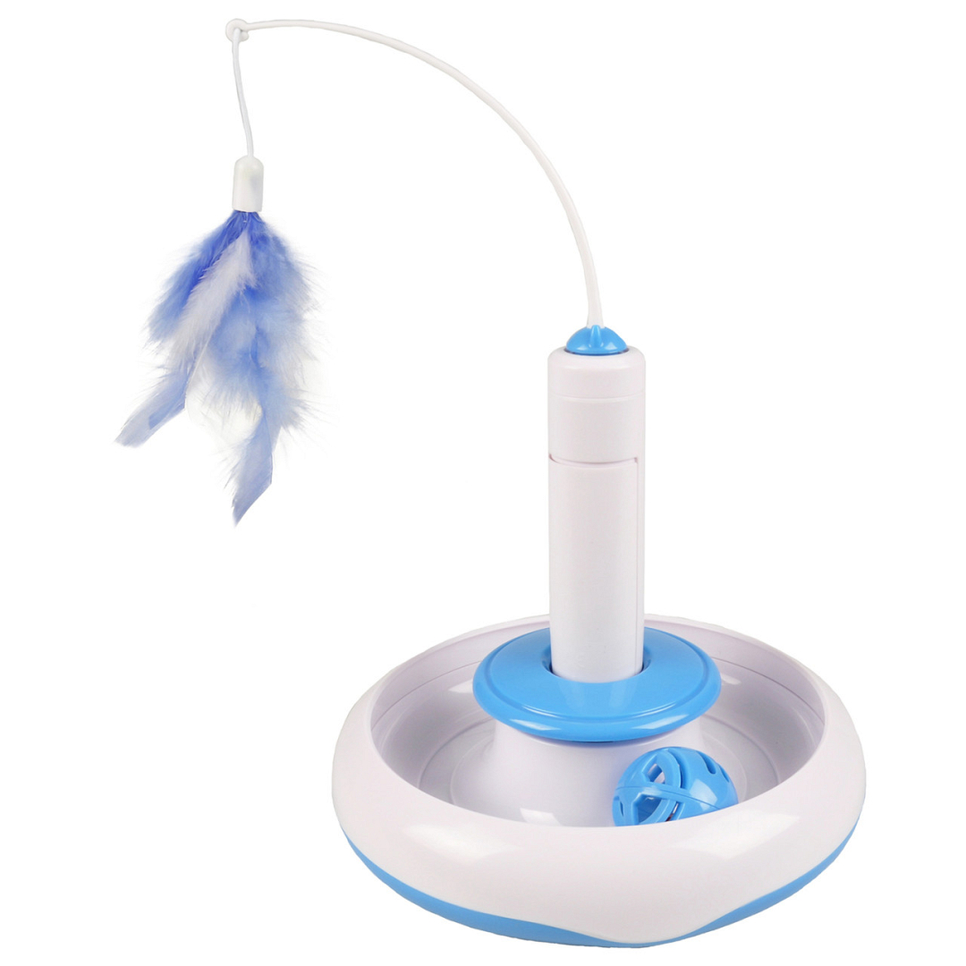 Uitdagend kattenspeeltje met rinkelend balletje en roterende veertjes voor extra speelplezier.