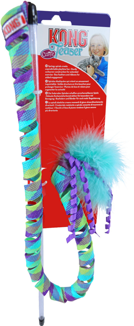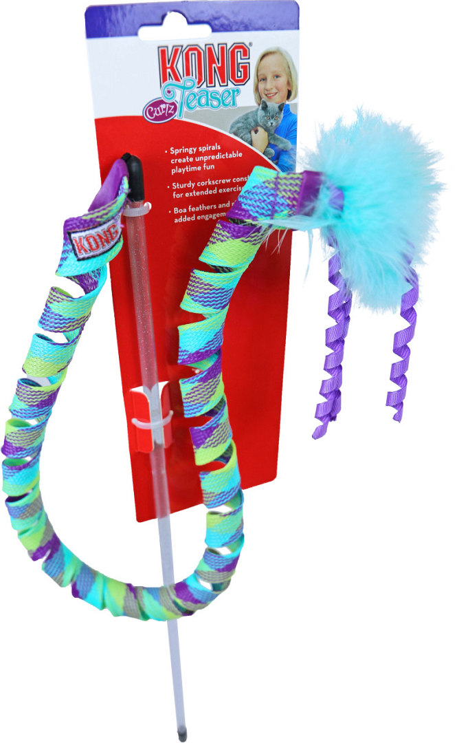 Kong Curlz Teaser heeft een kurkentrekker krul aan het einde van een glinsterende toverstaf. Door de razendsnelle terugslag wordt jouw kat beloond met meer wilde en snelle acties van de springveer, wanneer hij of zij op de veer en het lint afstuift. Hierdoor wordt het spel elke keer alleen nog maar leuker.