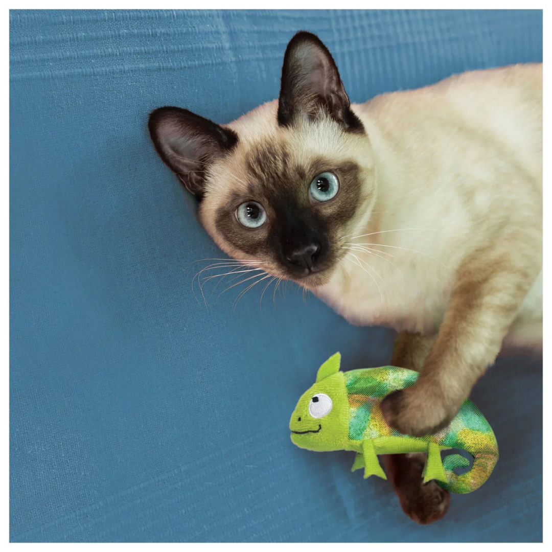 De Kong Reffilable Chameleon is een zacht en knuffelig pluchen catnipspeeltje met een hersluitbare buidel, zodat vers kattenkruid goed op zijn plek blijft. Het speeltje is inclusief een ruime hoeveelheid van het hoogwaardige Noord-Amerikaanse kattenkruid van Kong in een hersluitbare flacon. Als de geur van het kattenkruid gaat vervagen, voeg je gewoon wat vers kattenkruid toe voor een nieuwe ronde plezier! Kattenkruid kan in de vriezer worden bewaard, zodat het vers blijft. Het speeltje is wasbaar in de wasmachine als het kattenkruid is verwijderd.