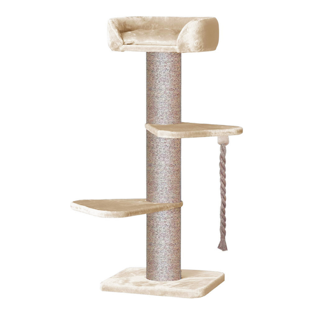 Krabpaal Scenery XXL is een stevige krabpaal met een hoogte van 153 cm waarvan de paal met gekleurd sisal is omwikkeld. De paal heeft een diameter van maar liefst 20 cm. De stevige bodemplaat heeft een afmeting van 60 x 60 cm en is extra zwaar uitgevoerd, voor meer stabiliteit. De sofa bovenop, met afneembaar kussen, biedt een uitstekend uitzichtpunt waar jouw kat in alle comfort alles in de gaten kan houden. Dankzij de twee extra plateau's komt jouw kat eenvoudig in de sofa. Dit maakt deze krabpaal buitengewoon geschikt voor niet alleen grotere rassen, zoals bijvoorbeeld de Maine Coon, maar ook voor oudere of minder atletische katten.