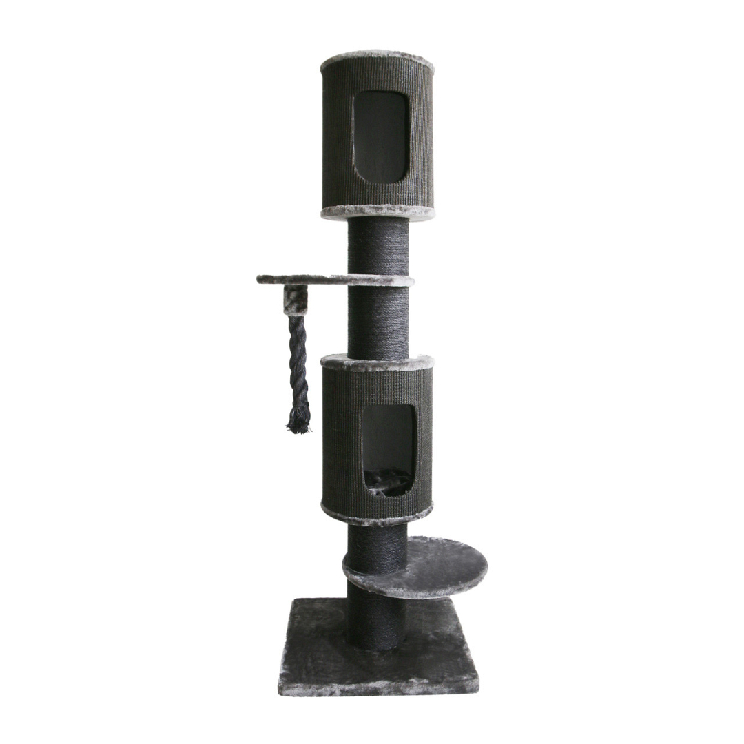 Krabpaal Yangra beschikt over twee cilindervormige huizen waarin jouw kat comfortabel kan ontspannen. De huizen zijn uitgerust met zachte pluchen kussens, waardoor ze dienen als knusse en comfortabele rustplekken voor jouw kat. Bovendien zijn de buitenkanten van de huizen voorzien van sisal tapijt, waardoor jouw kat ook hier zijn nagels kan scherpen. De krabpaal is tevens uitgerust met een stevig speeltouw, waardoor jouw kat zijn natuurlijke jacht- en speelinstincten kan uiten.