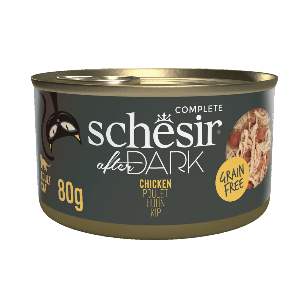 Schesir kattenvoer After Dark bouillon kip is een natvoer voor volwassen katten. De kat heeft een lange geschiedenis als nachtelijk roofdier, dat op zoek gaat naar kleine prooien als de duisternis valt. En zelfs vandaag de dag, ondanks het feit dat hij in een huiselijke omgeving leeft, heeft hij zijn instincten of voedingsbehoeften als een echte carnivoor niet verloren. Daarom is Schesir After Dark op vleesbasis met echte brokjes voedingsrijke organen, de ingrediënten die de kat in het wild zou krijgen, is rijk aan eiwitten en bevat geen granen.